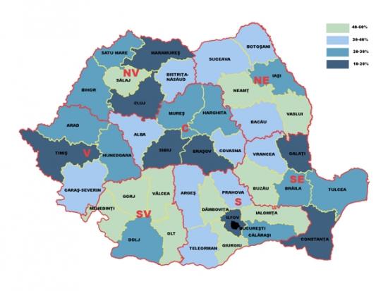 Aceasta este o hartă cu judeţele fără acces la internet broadband (sursa: Ministerul Comunicațiilor și Societății Informaționale)